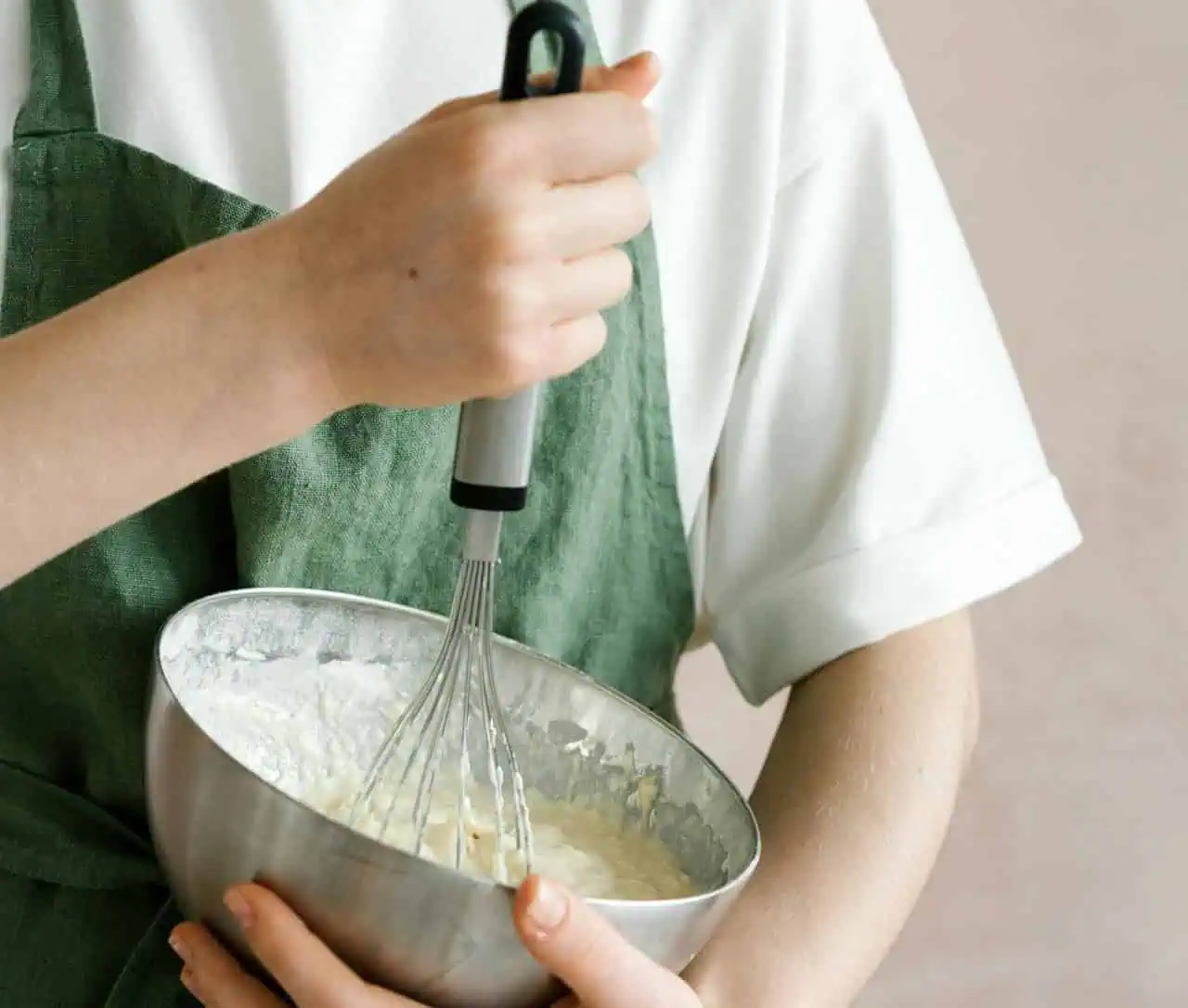 Ručný šľahač s metličkami na cesto zapneme na najnižšie otáčky a zmes šľaháme, kým sa ingrediencie nespoja.