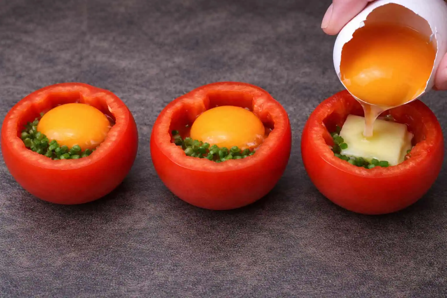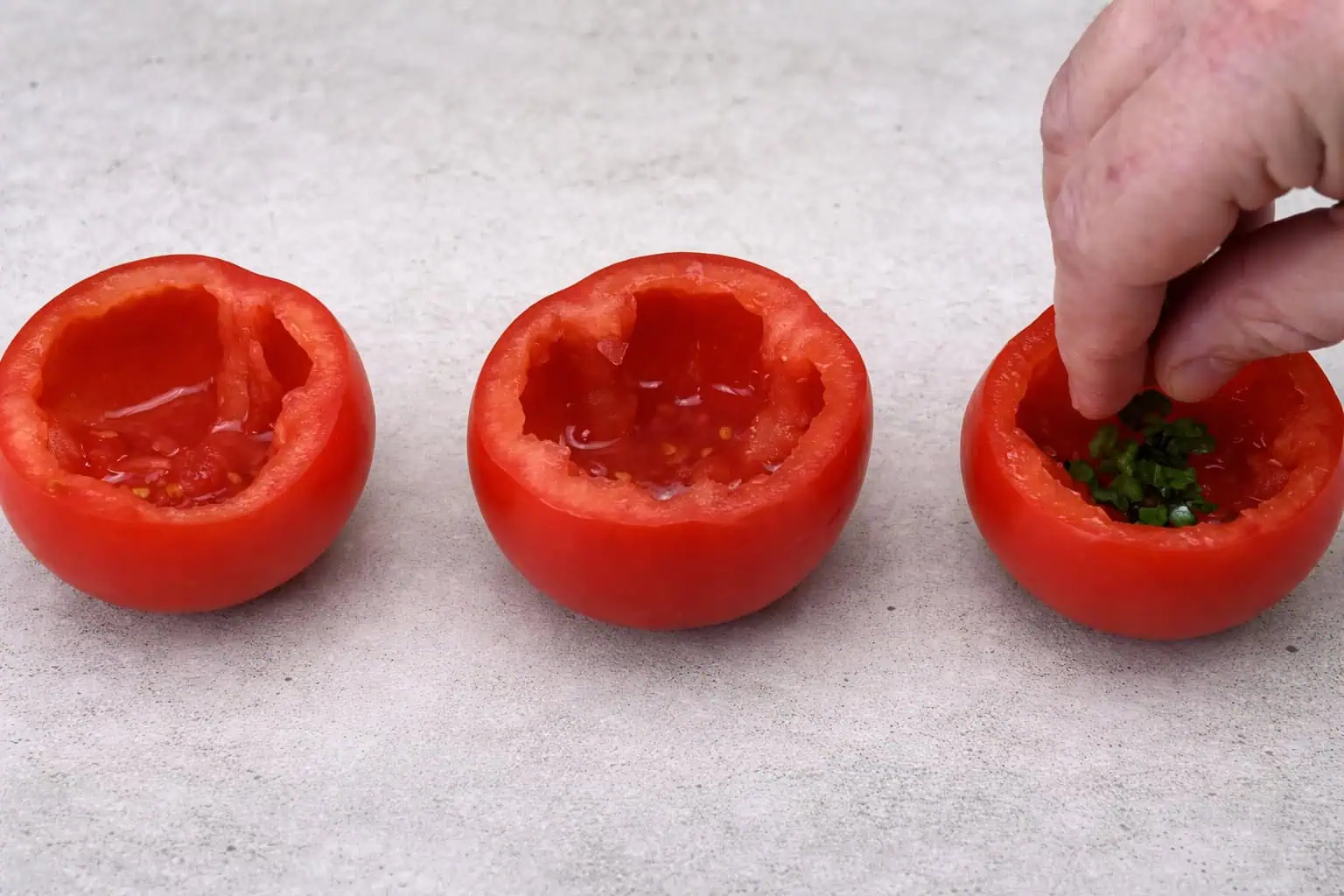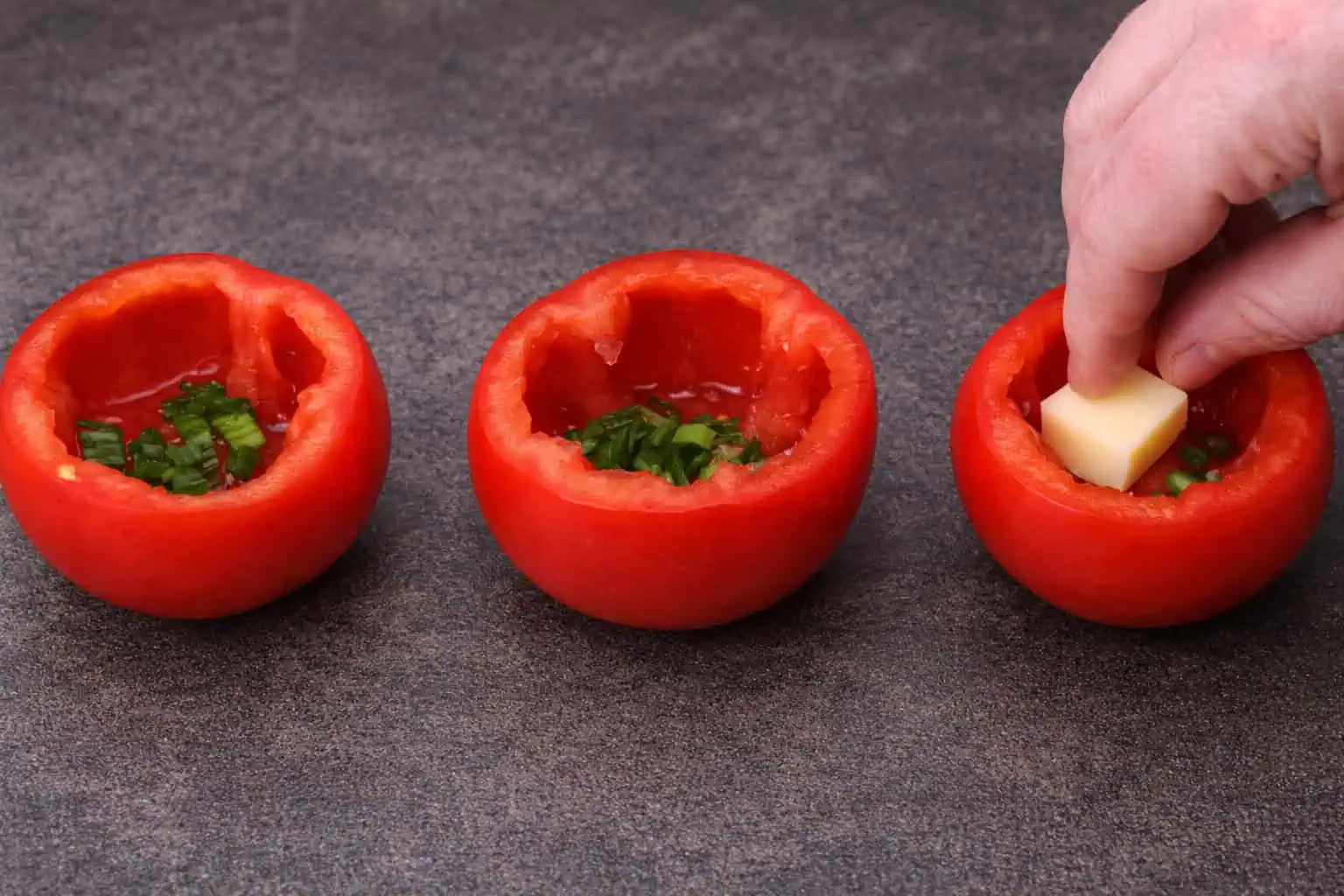 Do každej paradajky nasypeme nakrájanú pažítku.