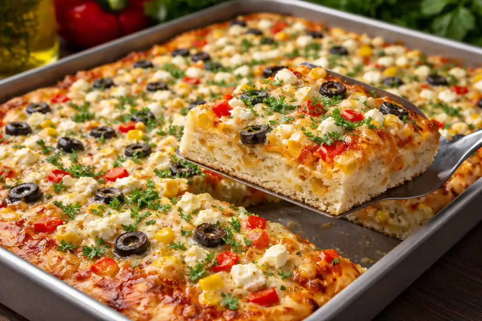 Tento „liaty pizzový koláč“ je ideálny na rýchlu večeru, pohostenie pre návštevu alebo ako chutná desiata.