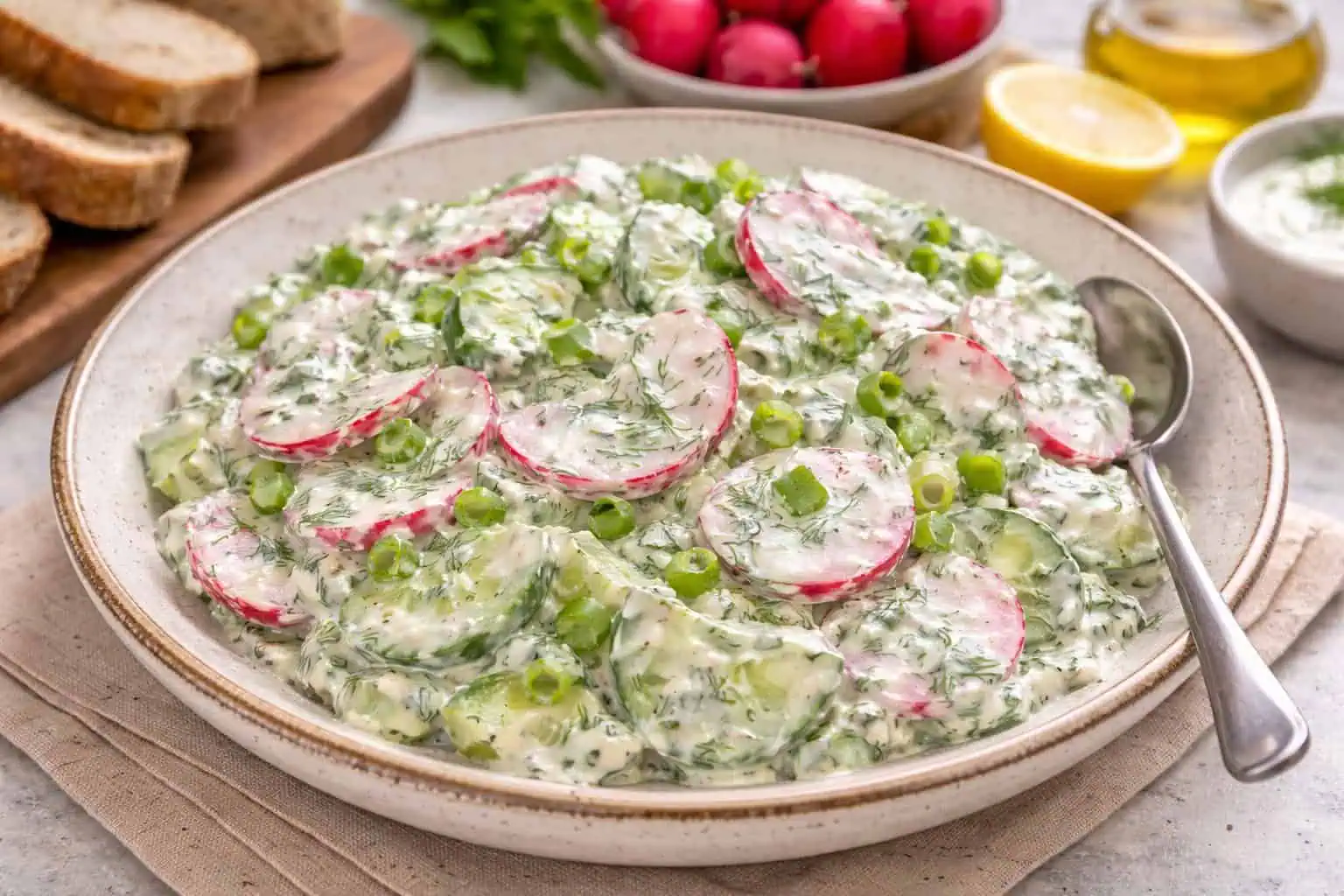 Tento jarný šalát s reďkovkami a uhorkami je výbornou voľbou.