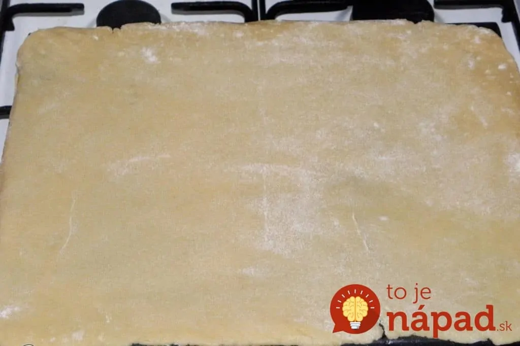 Rúru nastavíme na 190 stupňov. Všetky prísady na cesto zmiešame a vypracujeme tuhšie cesto. Cesto rozdelíme na dve polovice a obe rozvaľkáme na tenký plát. Každý plát upečieme na obrátenom plechu s rozmermi 30×38 cm každý 6-7 minút.
