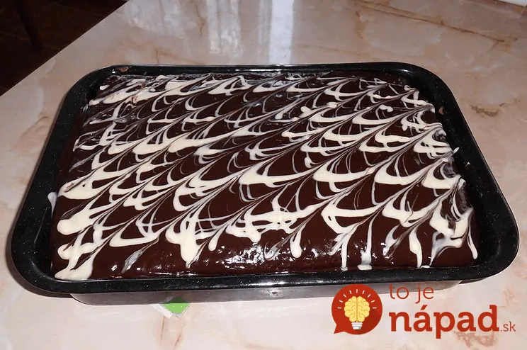 Tmavú aj bielu čokoládu so rozpustal v mikrovlnke s trochou oleja a navrstvila na vrch koláča pred podávaním.