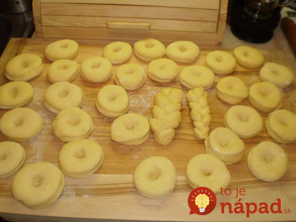 Jemne cesto pomúčime (múkou, ktorú sme si odobrali) – prikryjeme utierkou a necháme na teplejšom mieste nakysnúť min. 1 hod až 90 minút.
