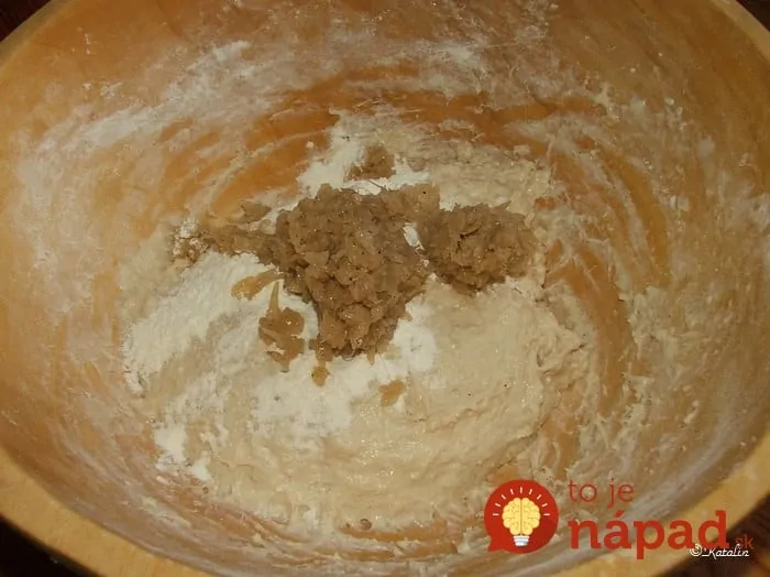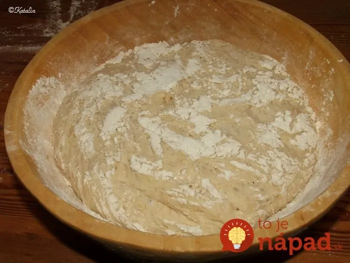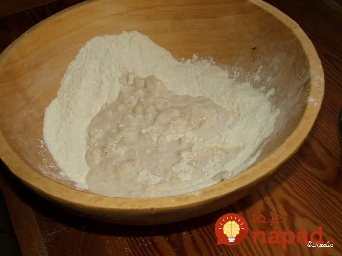 Zmiešame soľ, múku a kvások, ktorý vznikol zmiešaním vlažného mlieka, kvasníc a cukru. Do cesta vmiešame aj vychaldnutnú kapustu a vymiešame jednotné cesto. Poprášime ho múkou a necháme odpočívať.