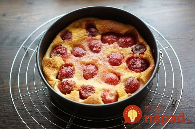Úžasný koláčik z liateho cesta, ktorý pripravíte v okamihu. Všetko, čo na koláčik potrebujete určite nájdete u vás doma. Okrem jahôd môžete použiť aj iné obľúbené ovocie.