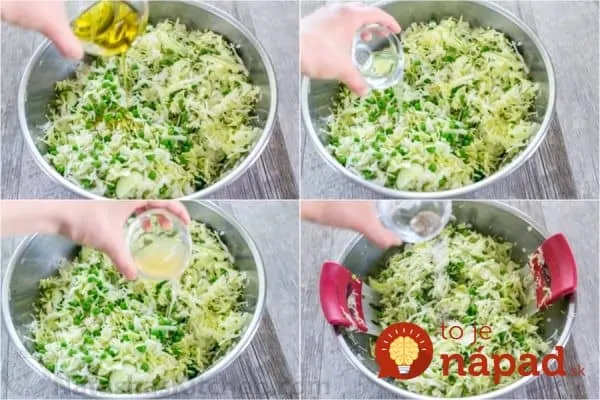Na zeleninu nalejeme olej, jablčný ocot aj obyčajný ocot. Necháme odležať v chladničke a pred servírovaním ochutíme soľou a korením.