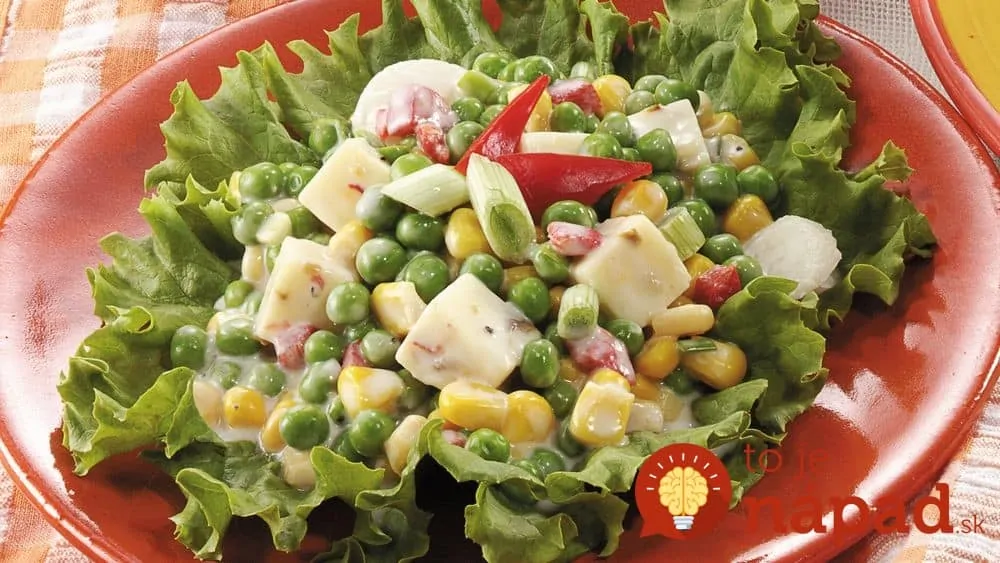 Šunku nakrájame na tenké prúžky a zmiešame s kukuricou, hrachom, krájanými uhorkami, vajciami, cibuľkou a majonézou. Môžeme dochutiť soľou a korením. Podávame s čerstvým pečivom.