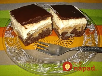 Nad parou roztopíme čokoládu a primiešame k nej druhú kyslú smotanu. Hneď natrieme na krém a môžeme krájať koláčik. Koláčik by mal postáť v chladničke, aby stuhol – bude sa lepšie krájať.
