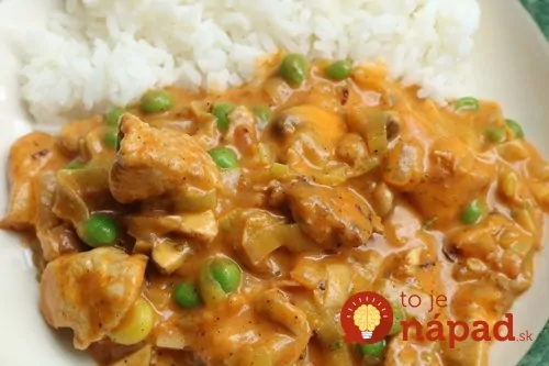 Keď je mäso mäkké, zalejem ho smotanovo-horčicovu zmesou, pridáme hrášok s kukuricou, premiešame a necháme niekoľko minút povariť.