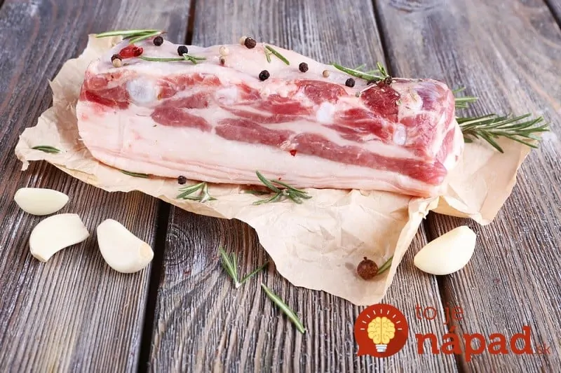 © DepositPhotos - Jemne nakrájajte cesnak a potrite ním slaninu. Pridajte do horúceho nálevu.