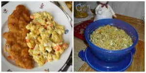 Toto je výnorná letná verzia klasického zemiakového šalátu. ja som podávala v nedeľu k rezňom a môj manžel si ani nevšimol, že nemá na stole