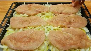Delikátne kuracie prsia zapečené s cibuľou, syrom, paradajkami a zemiakmi: Za pár minút je na stole chutný obed z jedného plechu!