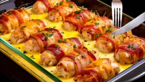 Takto pripravené kuracie rolky so zeleninovou plnkou, zabalené do slaninky a zapečené na zemiakoch s krémovou omáčkou a syrom, sú zaručeným receptom na úspešný nedeľný obed.